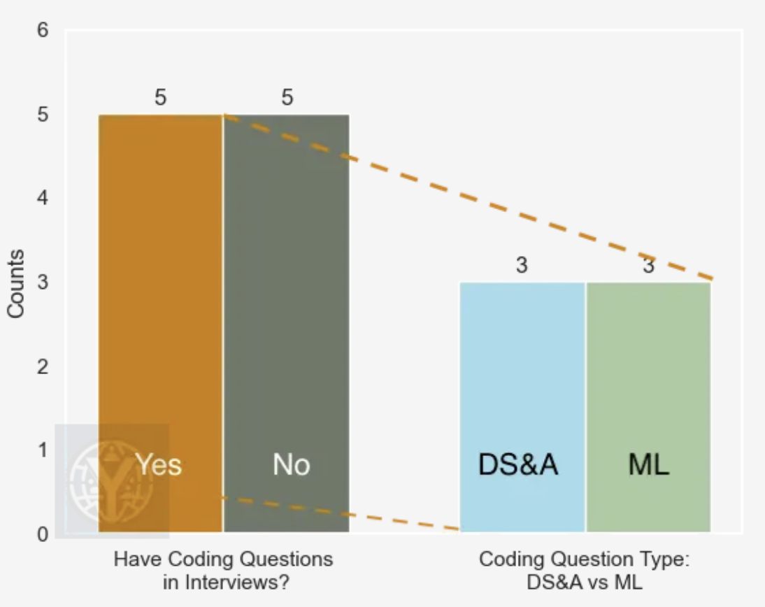 - online assessment or take-home assignments: This typically includes machine learning (ML) or deep learning (DL) coding questions, or data-structure-and-algorithms (DS&A) coding questions. Some also asked multiple-choice questions about ML/DL knowledge.